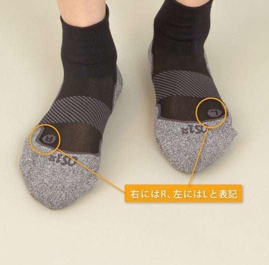 人間の足には26個の骨、33の関節、107の靭帯、19の筋肉と腱があり、これは体全体の骨の数の25%を占めています。左右の足の形に合わせた解剖学設計のOS1stのソックスは足の構造を研究し開発した「左右別デザイン」を採用しています。