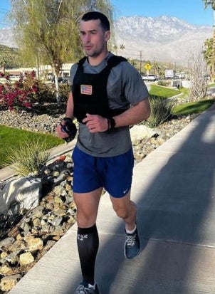 15ポンド(約7kg)のウェイトを付けて米国横断ランに挑戦しているクロスカントリーアスリート