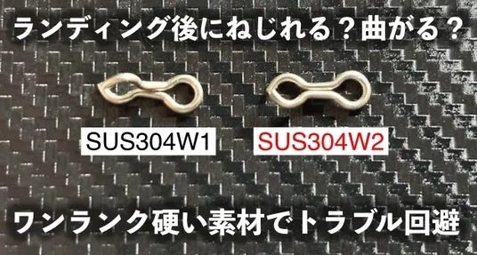 今回のルアーには、通常のルアーに使われる材料よりも硬いSUS304W2を使用しました。通常のルアーに使われるSUS304W1よりもワンランク固い素材です。