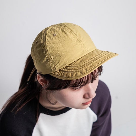 染色は、玉ねぎの外皮から抽出した天然色素“オニベジ”を使用。 やさしい色味とナチュラルな風合いが、男女問わず年齢問わず、誰にでも似合うキャップに仕上がっています。 軽さ、使いやすさ、そして環境配慮。 このキャップは、“あなたの感性”をジャマしない。