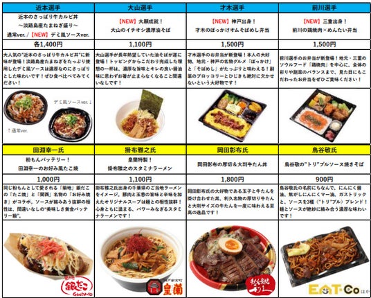 (2)「監督・選手コラボメニュー」対象(全10種) <表面>