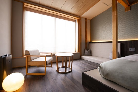 【浅葱(あさぎ)】 ∼お部屋の紹介編∼ 五月の空、澄んだ青が印象的な「浅葱 Asagi」の間。 麻の葉模様は、健やかな成長と繁栄の象徴。 どこか懐かしくも、凛とした空気が流れる 静かで穏やかなひとときをお過ごしください。 <スタンダード> 浅葱 【施設情報】 施設名 祭畤温泉 かみくら所在地岩手県一関市厳美町字祭畤32 グランドオープン 2025年4月25日(金) 客室数全7室(1室あたり1~4名利用可) 宿泊料金 1泊2食付 35,000~50,000円 料理監修 Grand Chef SHOTA(千葉翔太) 着物体験 着物レンタル+簡易着付け(5分程度) 公式Webサイト https://m-kamikura.com