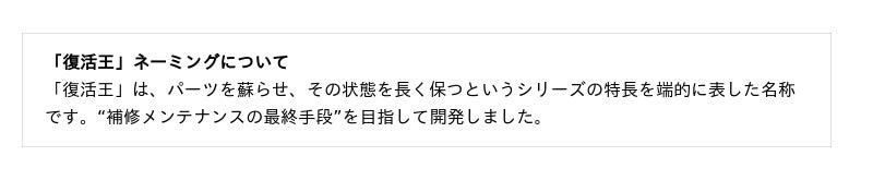 「復活王」シリーズ - 各製品特長