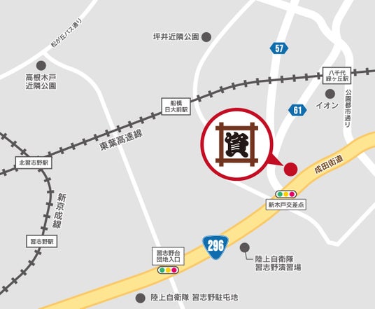 八千代店は成田街道沿い、JR八千代緑が丘駅からも徒歩約15分の立地!
