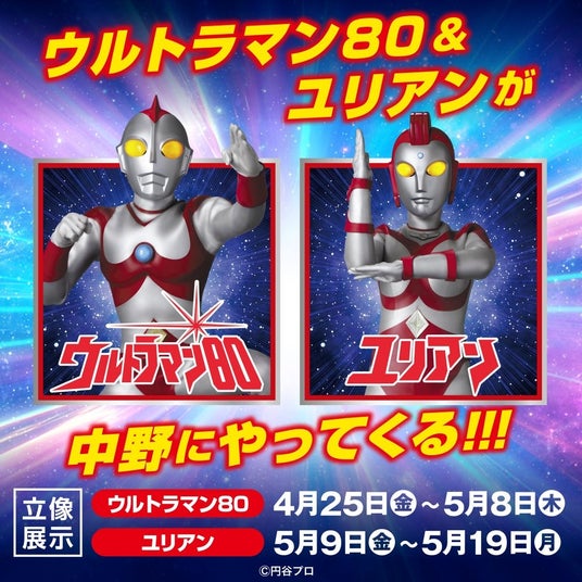 また、会場内には貴重な資料写真の展示をはじめ、会期前半にはウルトラマン80、後半にはユリアンの立像が登場!
