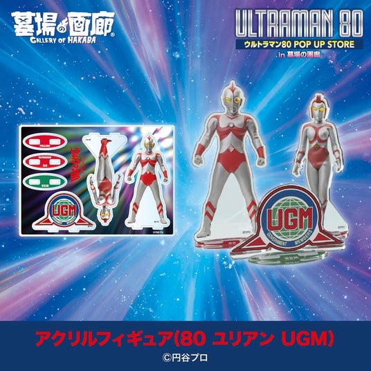 UGMのロゴ、ウルトラマン80、ユリアンが一堂に会するボリューミーなアクリルフィギュア。