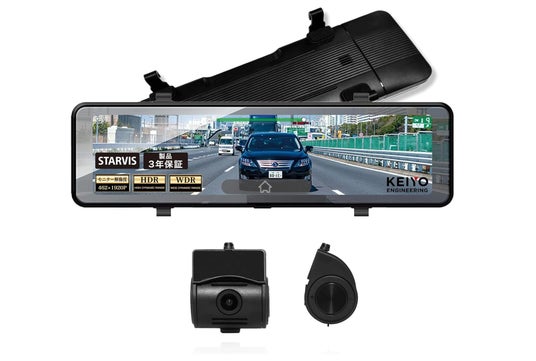 従来モデルから引き続き、200万画素のリアカメラが、同乗者や荷物で見えにくかった後方視界をカバーし、安心して後方確認ができます。また、高性能CMOSイメージセンサー「STARVIS」を搭載し、夜間や暗い場所でもきれいな映像を提供します。さらに、簡単な後付け設計により、誰でも簡単に取り付けが可能です。