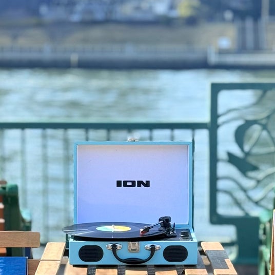 参加者持ち込みのレコードを再生できるプレイヤーを設置。焚き火を眺めながらお気に入りの音楽を楽しむことができます。