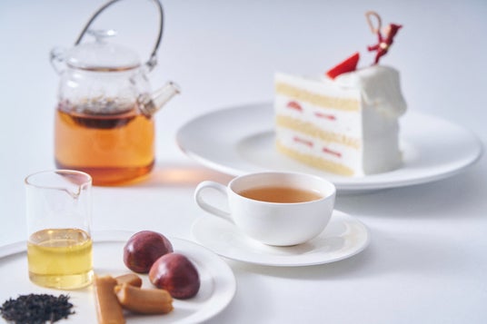 クリスマスデザートにぴったりのティーペアリングとして、『キャラメルはちみつのクリスマスティー』をご用意。キャラメルのとろけるような甘い香りの後におとずれる、マロンとはちみつのやわらかい香り。ケーキと一緒にお楽しみいただくことで、より一層クリスマス気分が高まります。