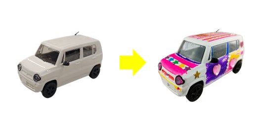 スズキ ハスラーを組み立てた後にペンやシールでデコレーションを施し、世界で1台だけのハスラーを