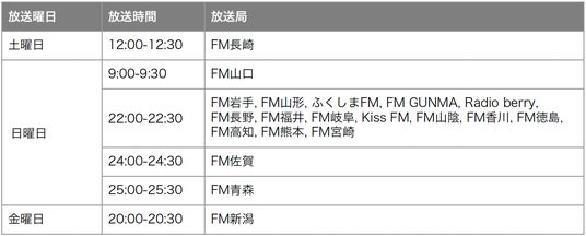 放送局 :JFN系列 20局 & more(詳細は番組HPをご覧ください)