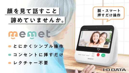 株式会社アイ・オー・データ機器(本社:石川県金沢市、代表取締役会長:細野 昭雄、以下、アイ・オー・データ)は、当社初となるサブスクリプション型のテレビ電話サービス『memet(めめっと)』を発表いたします。