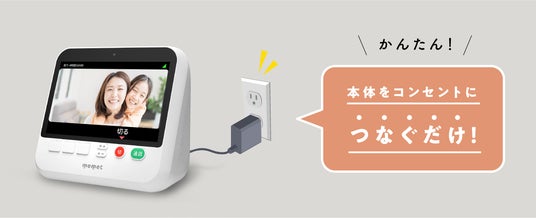 一般的なテレビ電話アプリ/サービスとは異なり、専用のアプリケーションを用い、コンセントに挿すだけで、テレビ電話を利用できます。