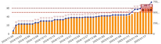 ▼支援募集期間を通じた支援数(折れ線)、及び支援金額(棒線)