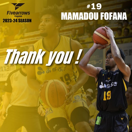このたび、自由交渉選手リストに公示しておりましたフォファナ ママドゥ選手が、トライフープ岡山に移籍することが決まりましたのでお知らせいたします。