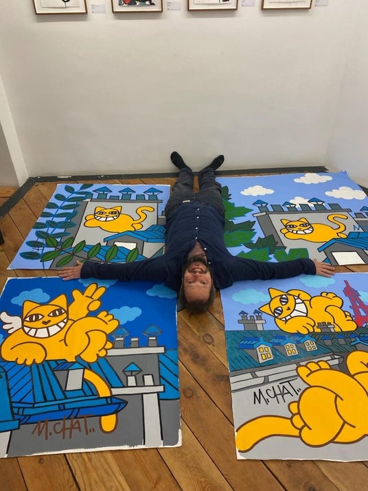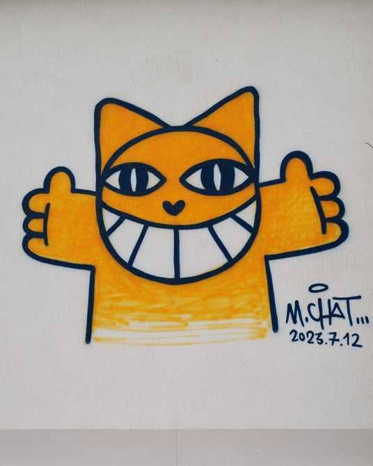 M.CHAT(本名:Thoma Vuille/トマ ヴィーユ)は、1977年にスイスで生まれ、フランスを拠点に活動するストリートアーティストです。2000年代初頭にフランス・オルレアンで黄色い猫のキャラクター「M.CHAT」を描き始め、瞬く間に世界中の都市で注目を集めました。彼の作品は、都市空間にユーモアと希望をもたらすシンボルとして愛され、パリ、ニューヨーク、ロンドン、香港などの街並みに登場しています。ストリートアート界では、バンクシーやシェパード・フェアリーと並ぶアーティストとして評価されており、ギャラリーや公式展覧会での活動も展開。今回の神戸でのプロジェクトは、日本での単独大型パブリックアートイベントとして初の試みとなります。