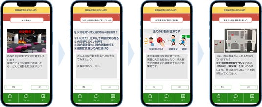今回は4つのコース(震災・火災・救命・防災学習)を用意し、参加者は各コースに該当するQRコードを読み取って参加しました。