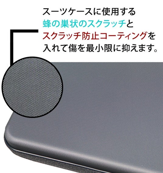 ハードケース内の荷物を守るために必要な最大限な厚みを設定。耐久性と便利さの両立を実現しています。スーツケースと同じ素材を使ってるのでしっかりノートパソコンを守る。一番の魅力はなんといっても、中の物を傷つけずにしっかりと守る耐久性。