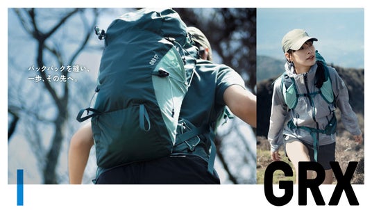「GRX」シリーズは、まるで体の一部のようにフィットし、スピーディーな行動をサポートする新感覚のバックパックです。ベスト型の幅広ショルダーハーネスと高重心設計を採用することで、荷物を体幹に近い位置で安定させ、優れた追従性を実現しました。