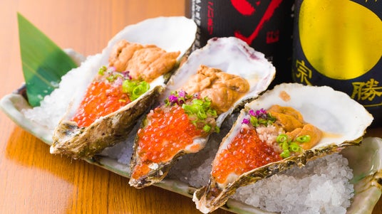 魚バカ一代の提供する、インパクト抜群の「背徳グルメ」は鍋だけではありません。生牡蠣にウニといくらを乗せた「痛風牡蠣」は、一年を通して人気の逸品です。使用する牡蠣は、その時期に一番美味しい品種を新鮮さを保った状態で仕入れているため、いつでも安心して生の状態でお召し上がりいただけます。