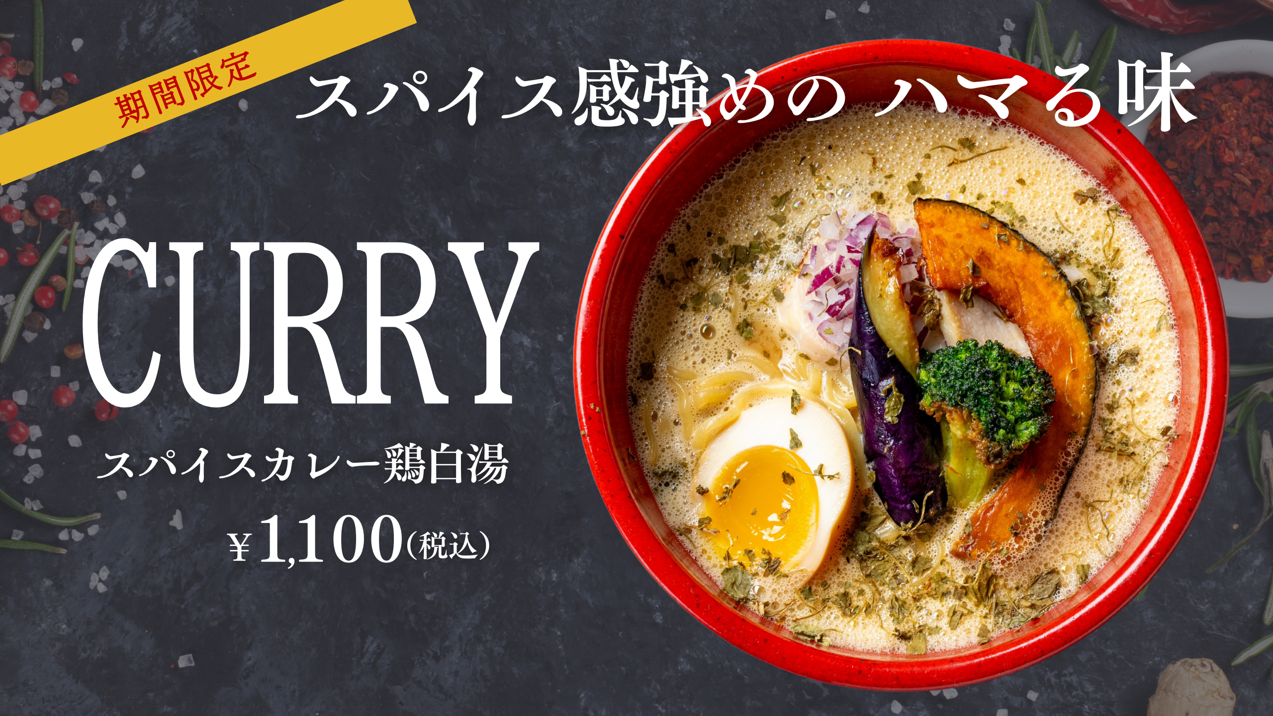 地図▷https://maps.app.goo.gl/Hh76o3VDLvUiGRgL7 (営業時間は全店11:00~15:00 ラストオーダー14:30) 体の芯から温まる、白鶏舎渾身の期間限定メニュー。スパイス香る進化系ラーメンで、冬のランチタイムを贅沢に彩ってみませんか?