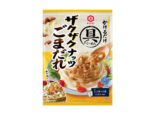 ■「具麺 ザクザクナッツごまだれ」ザクザクとした食感のアーモンドと、香ばしさとコクにこだわった2種のねりごまを使用し、やみつきになる味わいが特徴です。アーモンドの食感と芳醇なごまの風味がうどんによく合います。加熱した鶏肉にかけて「バンバンジー」などのアレンジメニューも楽しめます。
