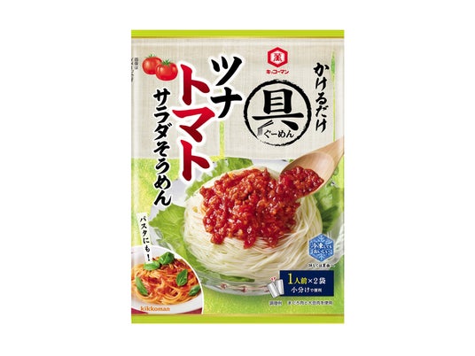 ■「具麺 ツナトマトサラダそうめん」マグロを使ったツナのうま味とトマトの酸味が特徴のさっぱりとした味わいで、そうめんにぴったりです。パスタにかけて「ツナトマトパスタ」や、ごはんの上にレタスやチーズと一緒にのせる「タコライス風サラダごはん」などのアレンジメニューも楽しめます。