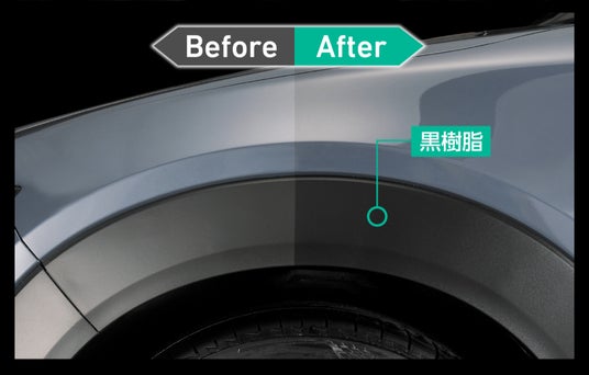 本製品は黒樹脂でもボディと同等の撥水効果・艶感が出るよう設計されています。そのため別途、黒樹脂専用コーティングしなくても、本製品1つでボディも黒樹脂も施工可能です。近年黒樹脂パーツの面積が増えているSUVに最適です。