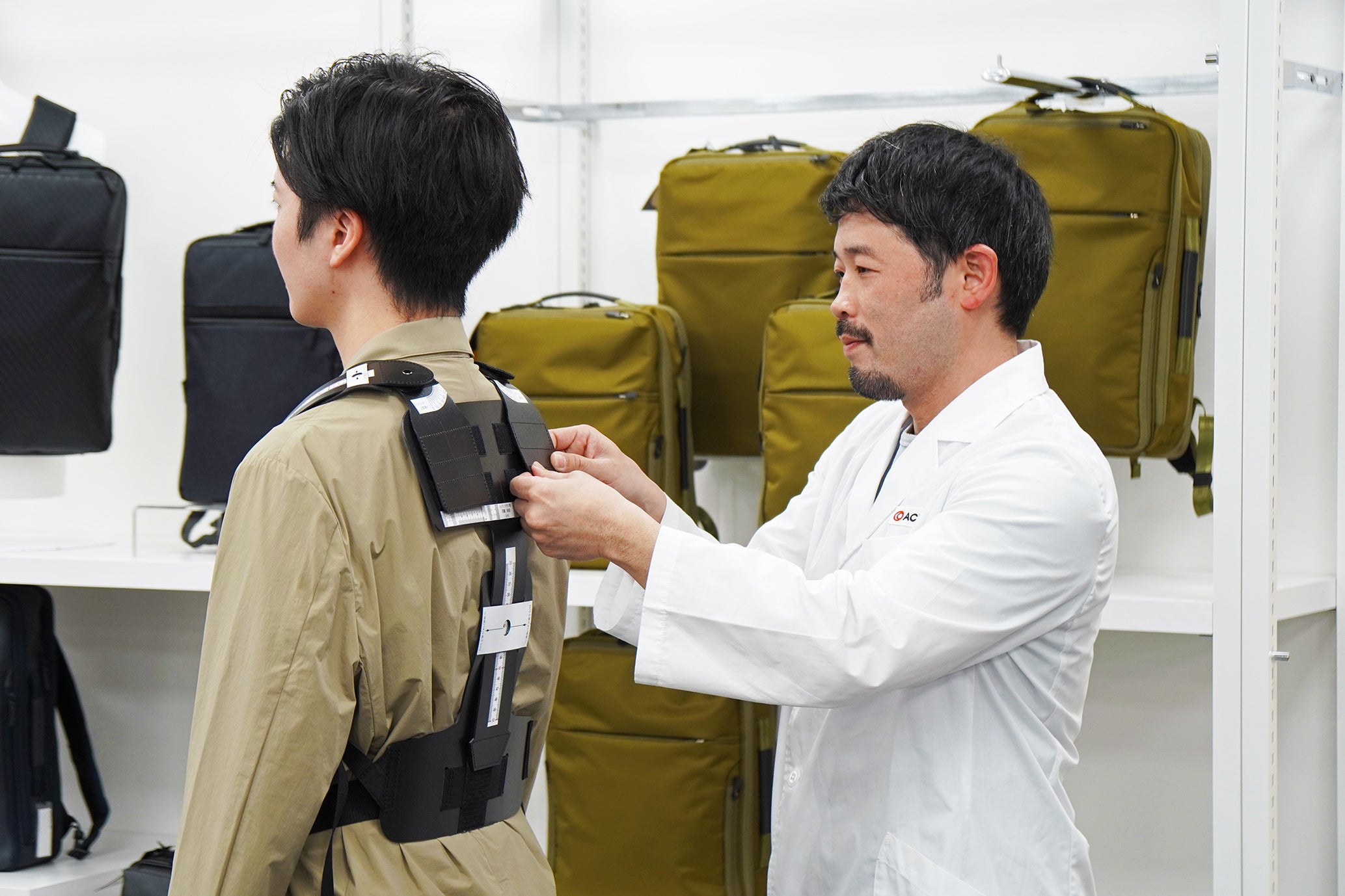 体験型イベント「ハーネスフィットラボ」では、店頭スタッフによる「ガジェタブルDP2 4U」のフィッティング提案や、「4Uハーネス」開発者の博士(工学)若生 然太 がお客様の背中を計測・提案するサービスを日数限定で行います。