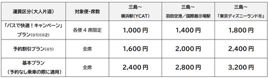 各便4席限定で基本プラン運賃から1,400円割引となる「バスで快適!キャンペーン」プランを、7月末まで販売します。最も安い三島~横浜駅(YCAT)の区間では、片道1,000円でご利用いただけます。また、WEBからの事前予約・決済時にご利用いただける「予約割引プラン」も通常時より割引を拡大し、基本プランから800円割引でご利用いただけます。