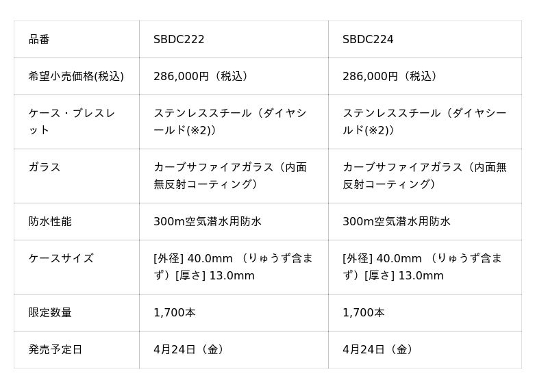 セイコーウオッチ株式会社(代表取締役会長 兼 CEO 兼 CCO:服部 真二、本社:東京都中央区)は<セイコー プロスペックス>より、ブランドのイメージキャラクターを務め、常に最大限のパフォーマンスを追求する大谷翔平選手の偉大なる功績を記念した数量限定モデル2種を、2026年4月24日(金)より日本国内で発売いたします。いずれも限定本数1,700本、希望小売価格は286,000円(税込)です。
