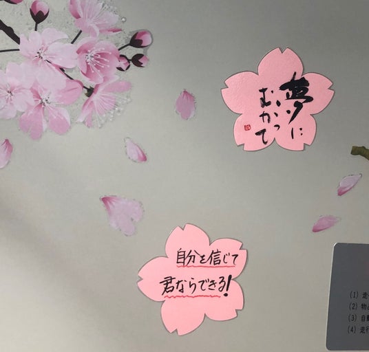 4.桜の花を模したカードには先生からのメッセージも掲示