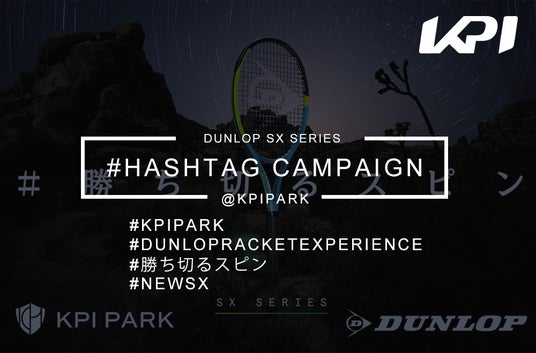 KPIPARKにて開催される大会・またはコート利用にてダンロップの NEW「SX300」シリーズを体験して、指定のハッシュタグをつけてSNSにレビューを投稿すると特典をプレゼント!