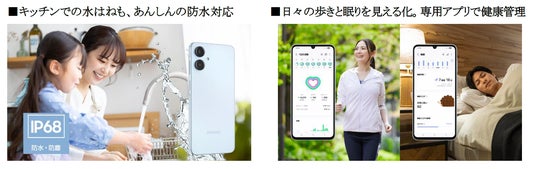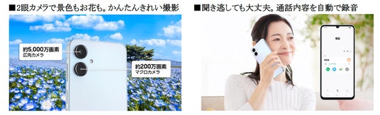 大きな文字とシンプルな画面表示で、スマホを初めて使う方でも使いこなせる「かんたんモード※1」に対応し、ホーム画面からワンタップで切り替えできるので、設定もかんたんです。さらに、スマホの使い方を無料で相談出来る「Galaxy使い方相談」直通電話※2を搭載。使い方に困ったときは、サポートセンターへかんたんに電話でお問い合わせいただけます。