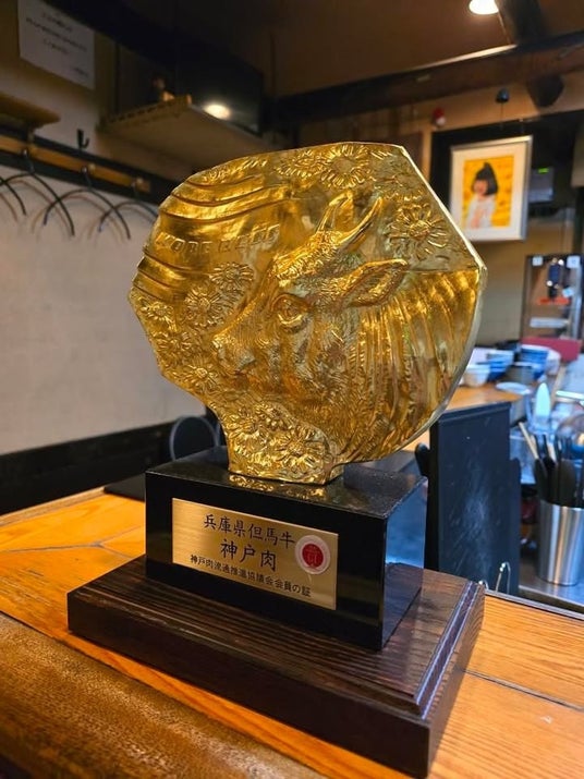 神戸ビーフの取扱指定登録店である証明となるブロンズ像