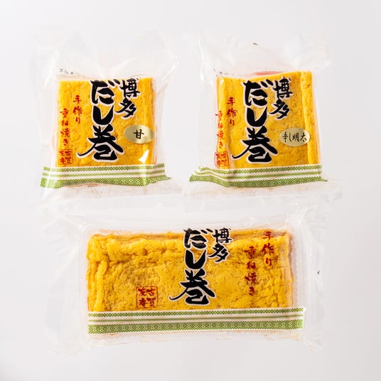 プレーンタイプは「甘」「中甘」「微甘」の3種類で、「明太子」や「ネギ」「ゆず」などの具材が入っただし巻を販売。