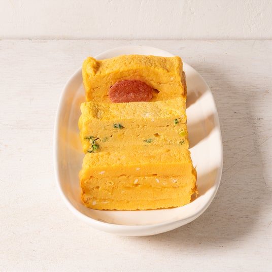 ▲博多だし巻 プレーン 税込421円/ネギ 税込486円/柚子 税込540円/明太子 税込712円