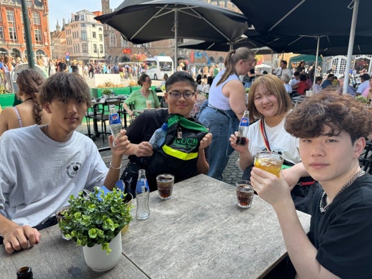ヨーロッパに渡航した4名の学生 (ベルギー ブリュッセルにて)