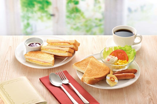▲左:トーストサンドモーニングハムタマゴ/右:モーニングプレートソーセージ