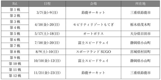 2025年シーズンは2月18日(⽕) - 19日(水)、開幕前に唯一、全チーム・全ドライバーが参加する公式テストを経て、3月7日(金) - 9日(日)に、鈴⿅サーキットにて開幕いたします。