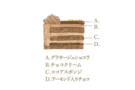 ーム、ふわふわのココアスポンジ、アクセントにパリッとしたアーモンド入りチョコを重