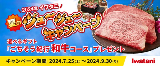 岩谷産業株式会社(本社:大阪・東京、社長:間島 寬)は、夏休み中の団らんやレジャーにぴったりな「やきまる」「炙りや」などの対象商品をご購入いただいた方の中から抽選で150名様に、選べるギフト「ごちそう紀行 和牛コース」(1万円相当)をプレゼントする「イワタニ夏のジュ~ジュ~キャンペーン」を開始いたします。キャンペーン期間は2024年7月25日(木)~2024年9月30日(月)です。