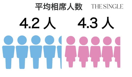 2024年8月のTHE SINGLEの平均相席人数は男性は4.2人、女性4.3人となりました。