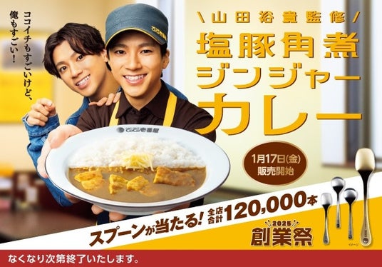 1月17日からココイチ「創業祭2025」を開催。山田裕貴監修「塩豚角煮ジンジャーカレー」を数量限定販売!合計12万本のオリジナルスプーンが抽選で当たる!