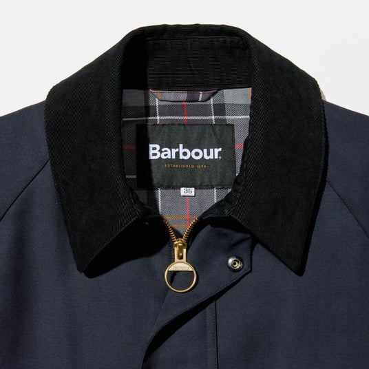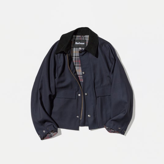 〈Barbour(バブアー)〉を代表するショート丈のブルゾン『SPEY』に素材を別注しました。 インラインのモデルよりも着丈を長くすることでタウンユースにフィットさせるなど、細かなサイズ調整を加えています。