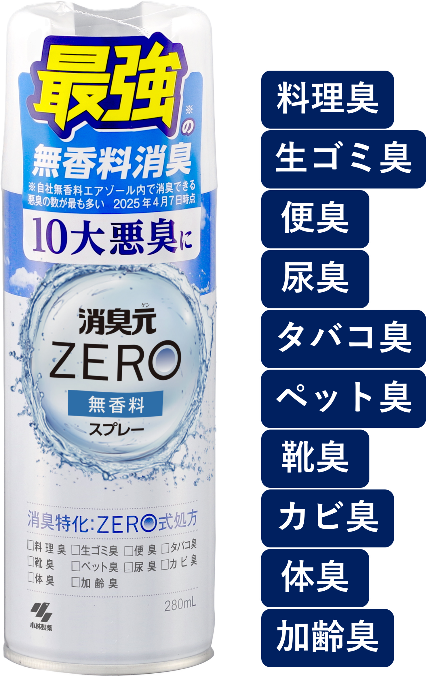 小林製薬株式会社(本社:大阪市、社長:豊田 賀一)は、『消臭元ZERO』シリーズより、家庭内で突発的に発生しやすいニオイに、必要なときにサッと対処できる無香料の消臭スプレー「消臭元ZEROスプレー無香料」を、2026年3月26日(木)より全国で発売します。