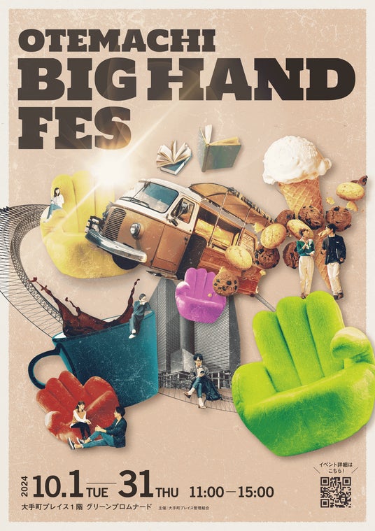 10月の1ヶ月間、大「手」町にちなんで、手にまつわるコンテンツを体験できるイベント「OTEMACHI BIG HAND FES」を開催!手をモチーフとした空間装飾や、日替わりのキッチンカーも♪