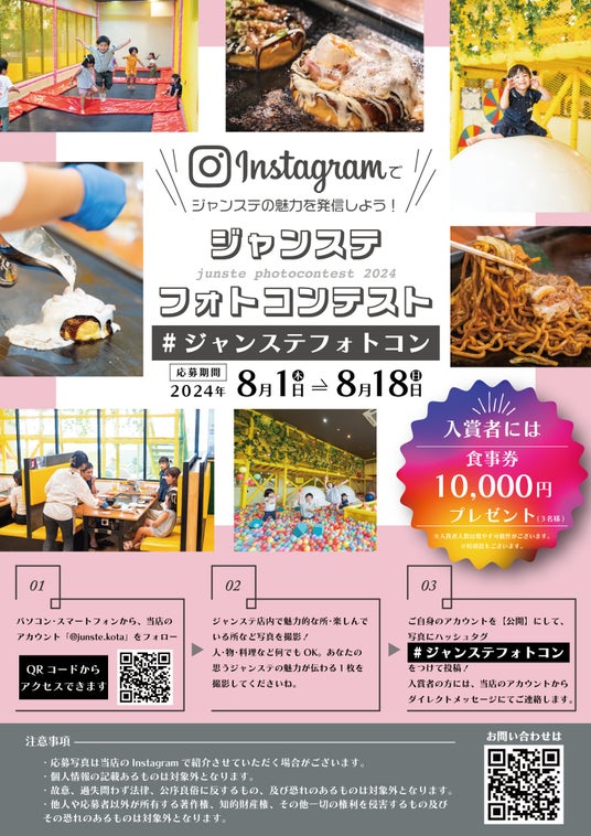 ジャンステ~鉄板/お好み焼き~(運営:ウッドデザインパーク株式会社)で8月1日~18日の間フォトコンテストを開催いたします。入賞者には10,000円分の食事券をプレゼント