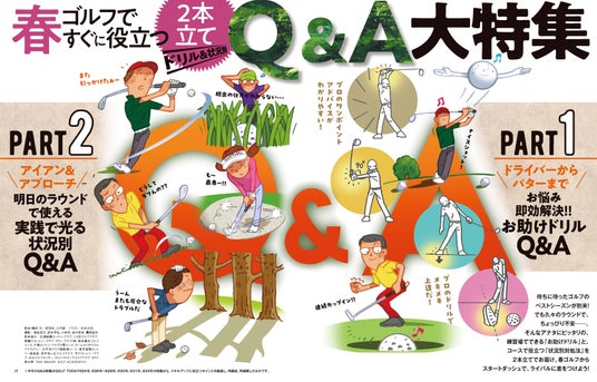 春のゴルフシーズン到来! シーズンインに向けてやってきた練習を無駄にしないよう、悩んだら「GOLF TODAY」を見てラウンド前に即解決! ゴルフの技術的な悩みを一問一答でドライバーからパターまで紹介します! パート2ではゴルフ場で出くわす状況別の悩みと答えをQ&A方式でお届け。特に同じ状況におけるアイアンとアプローチの打ち方レッスンは必見です。