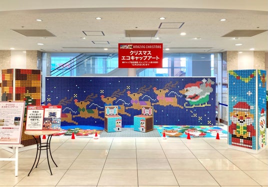 資源の再生および,世界の子どもたちにワクチンを届けることを目的に,“ペットボトルキャップ”を使用したクリスマスモチーフの大きなドット絵をお客さまと一緒に制作し,ひとつの作品に仕上げていく参加型環境イベントを開催いたします。実施にあたり,ペットボトルキャップの回収にご協力いただいた方は,作品用に用意した色とりどりのキャップを使ってドット絵の制作にご参加いただけます。エコキャップアートは,東京デザイン専門学校の学生のみなさまにクリスマスにちなんだデザインを考案いただきました。回収したペットボトルキャップは「世界の子どもにワクチンを 日本委員会」に寄付され,回収業者によってリサイクル資源として販売されたのち,UNICEFと連携してポリオワクチンに換え,世界の子どもたちに届けられます。